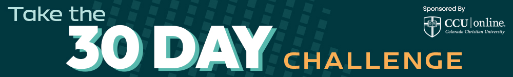 The 30-Day Challenge is sponsored by Colorado Christian University Online where you can enter now to win a $10,000 scholarship.