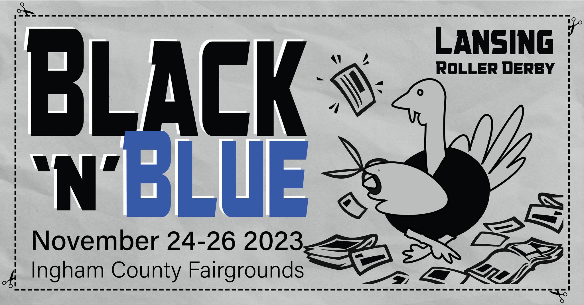 Lansing Roller Derby is pleased to announce the 11th annual Black n’ Blue tournament will be held November 24-26th at the Ingham County Fairgrounds in Mason, Michigan. The annual celebration showcases our region’s skaters that compete against each other in the sport of flat track roller derby. Participants are members of surrounding area women’s teams, all-gender teams, junior all-gender teams.