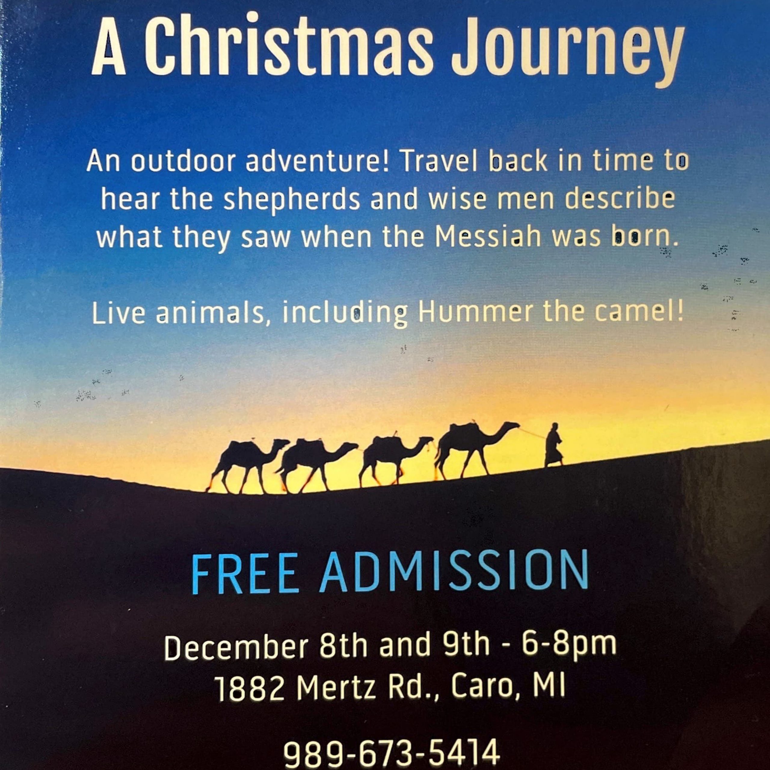 An outdoor adventure! Travel back in time to hear the shepherds and wise me describe what they saw when the Messiah was born. Live animals, including Hummer the camel.