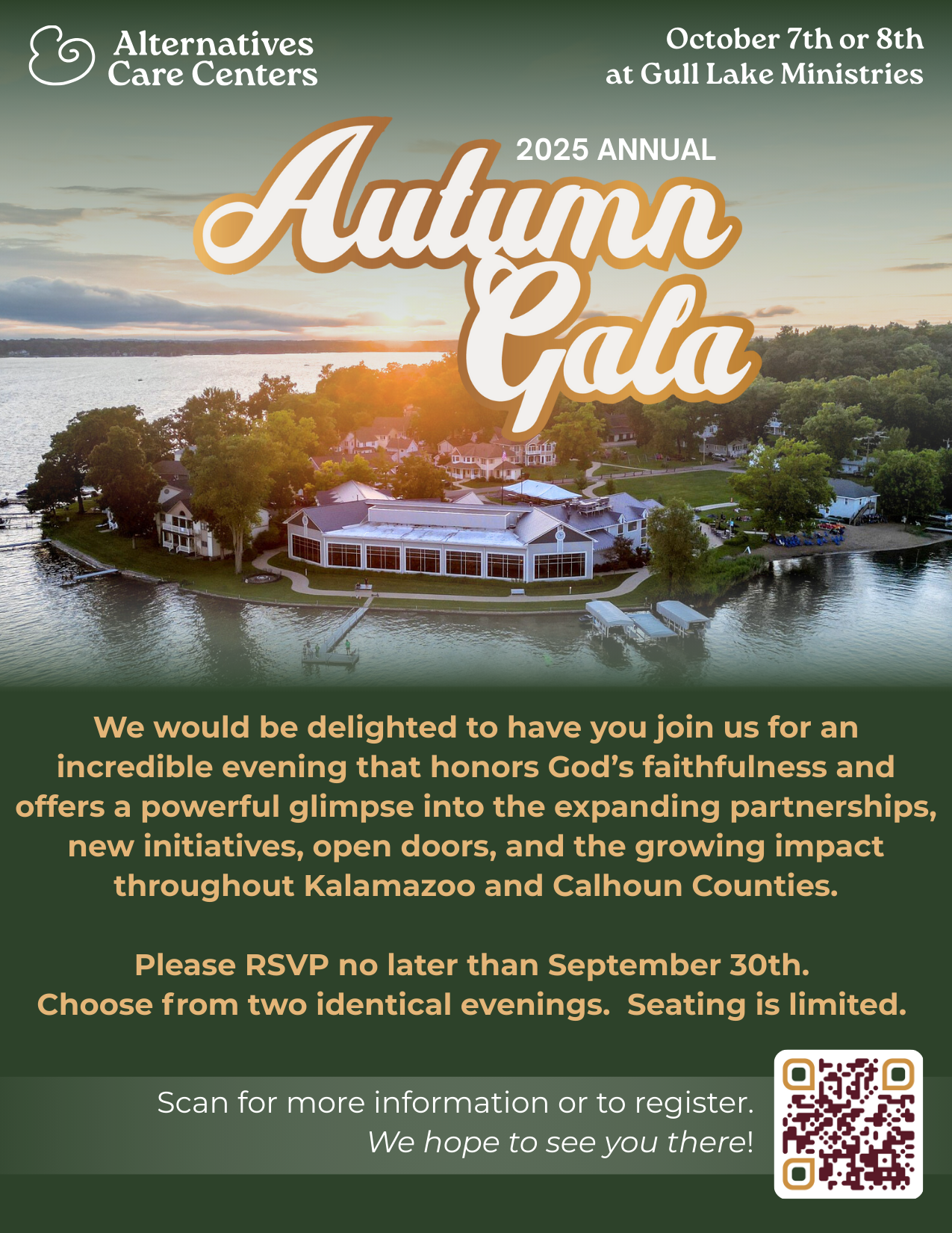 We would be delighted to have you join us for an incredible evening at beautiful Gull Lake Ministries. Guests will enjoy an elegant evening that honors God’s faithfulness and offers a powerful glimpse into the expanding partnerships, new initiatives, open doors, and the growing impact throughout Kalamazoo and Calhoun Counties.