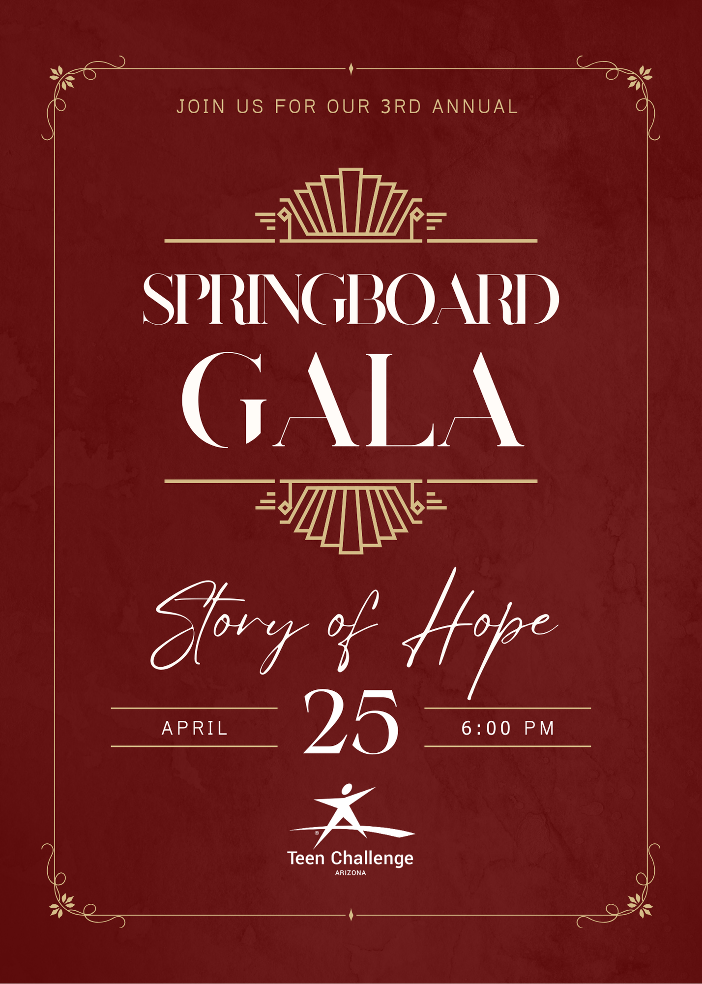 This is a formal Gala to raise funding for Springboard Home for Girls with Teen Challenge of Arizona. Springboard is a short-term, residential program providing faith-based services to adolescent girls (ages 12-17) who are navigating life-controlling issues. We are dedicated to offering services to families regardless of their ability to pay program tuition, and that is where YOU come in! Our partners help make it possible for us to provide financial assistance to families in need so they can walk in the healing and freedom found in Christ Jesus. It’s time to put on your best and celebrate the STORY OF HOPE!