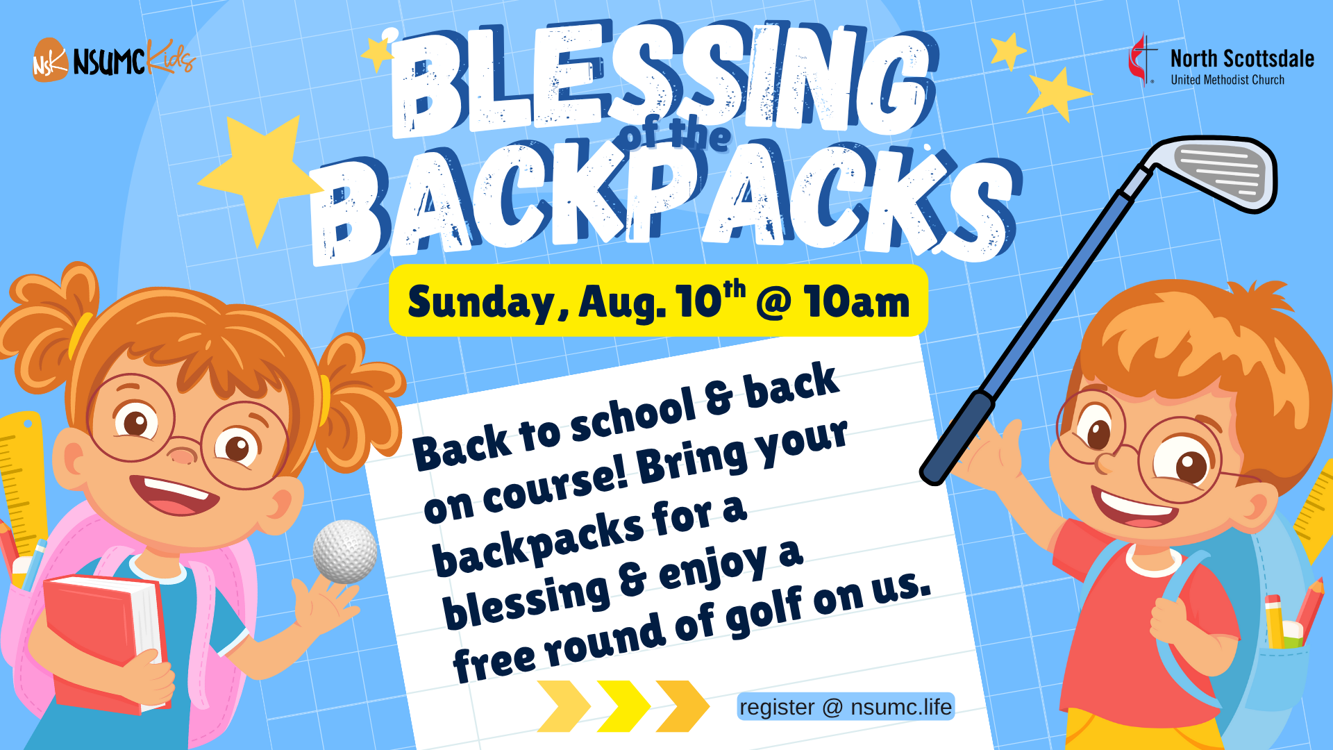 SCOTTSDALE, AZ — North Scottsdale United Methodist Church (NSUMC) invites families to kick off the new school year with a fun, faith-filled twist. On Sunday, August 10th @ 10am kids and adults alike are welcome to join us for our annual Blessing of the Backpacks — and this year, we’re adding a round of mini-golf to the mix!