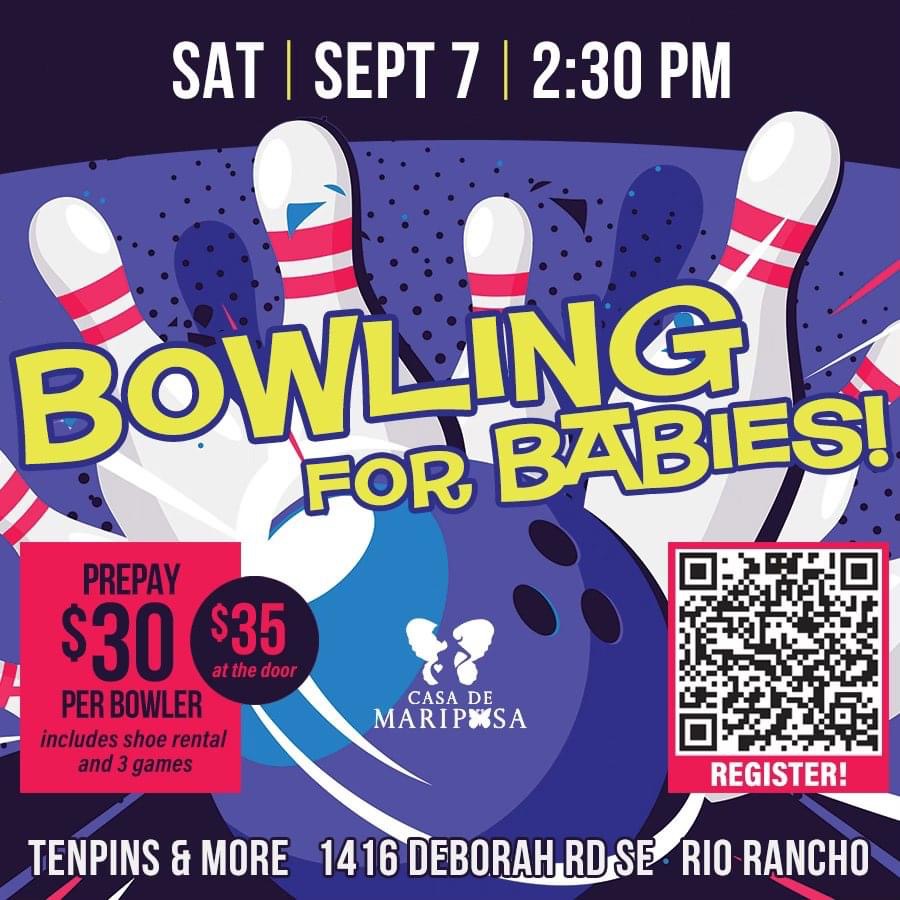 Bring the entire and join us for an afternoon of bowling for babies to benefit Casa de Mariposa Maternity Home – 3 Games and Shoes included in cost!