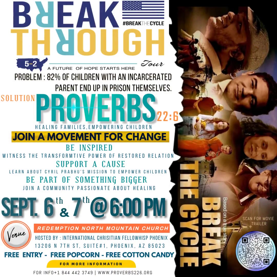 Cyril Prabhu is the founder of Proverbs226 ministry based on his life experiences and giving an ear to the voice of God to start this ministry. This is a ministry to bring forgiveness, love and unity back into the families of people who are incarcerated and in prison. The second part is to help the kids of these families with education so that they can build their lives and don’t fall into the cycle like their parents.