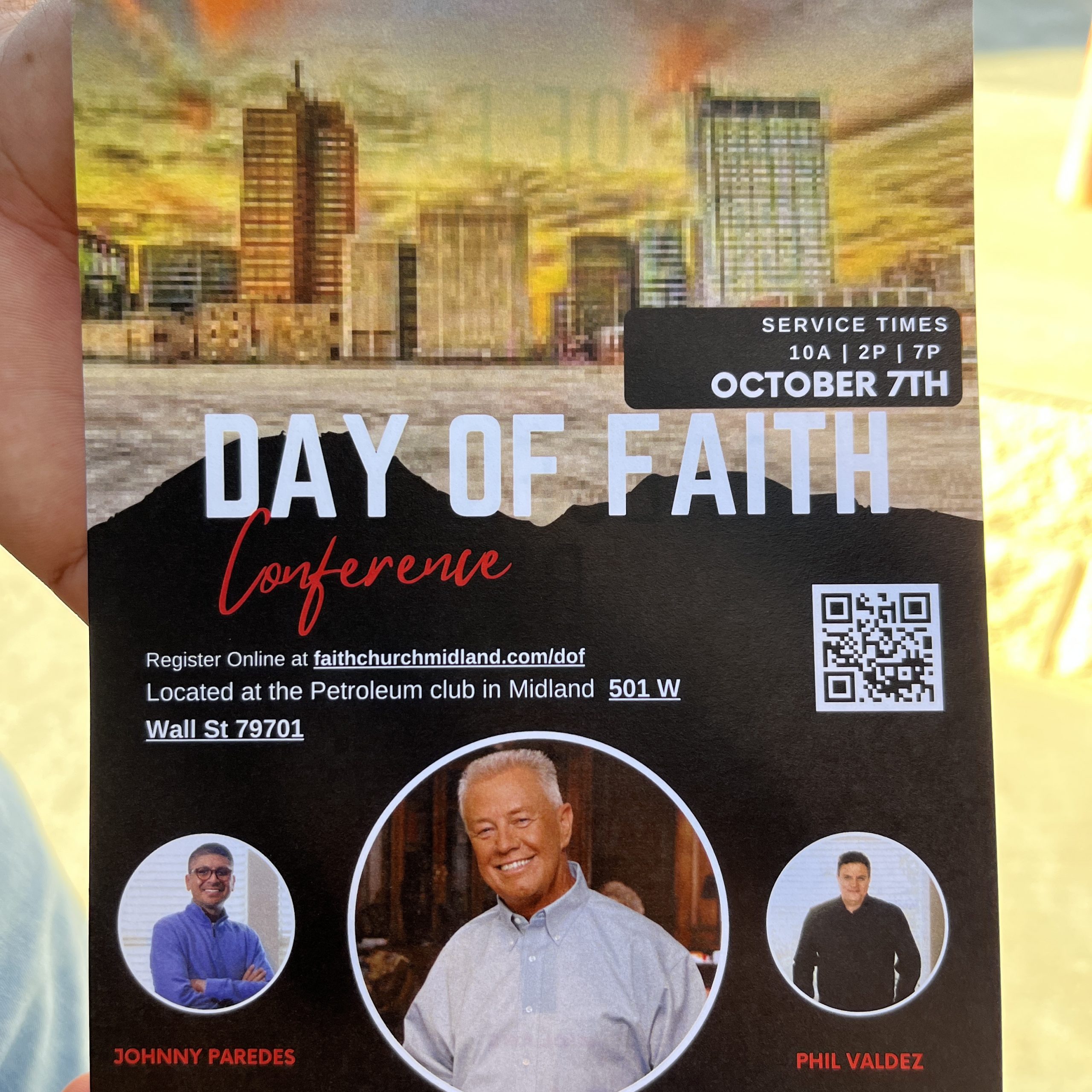 Day of Faith Conference featuring Dr. Jerry Savelle. October 7th 2023. Midland Petroleum Club 501 W. Wall St. Midland TX 79701. Service times. 10am 2pm and 7pm. To register: www.faithchurchmidland.com/dof