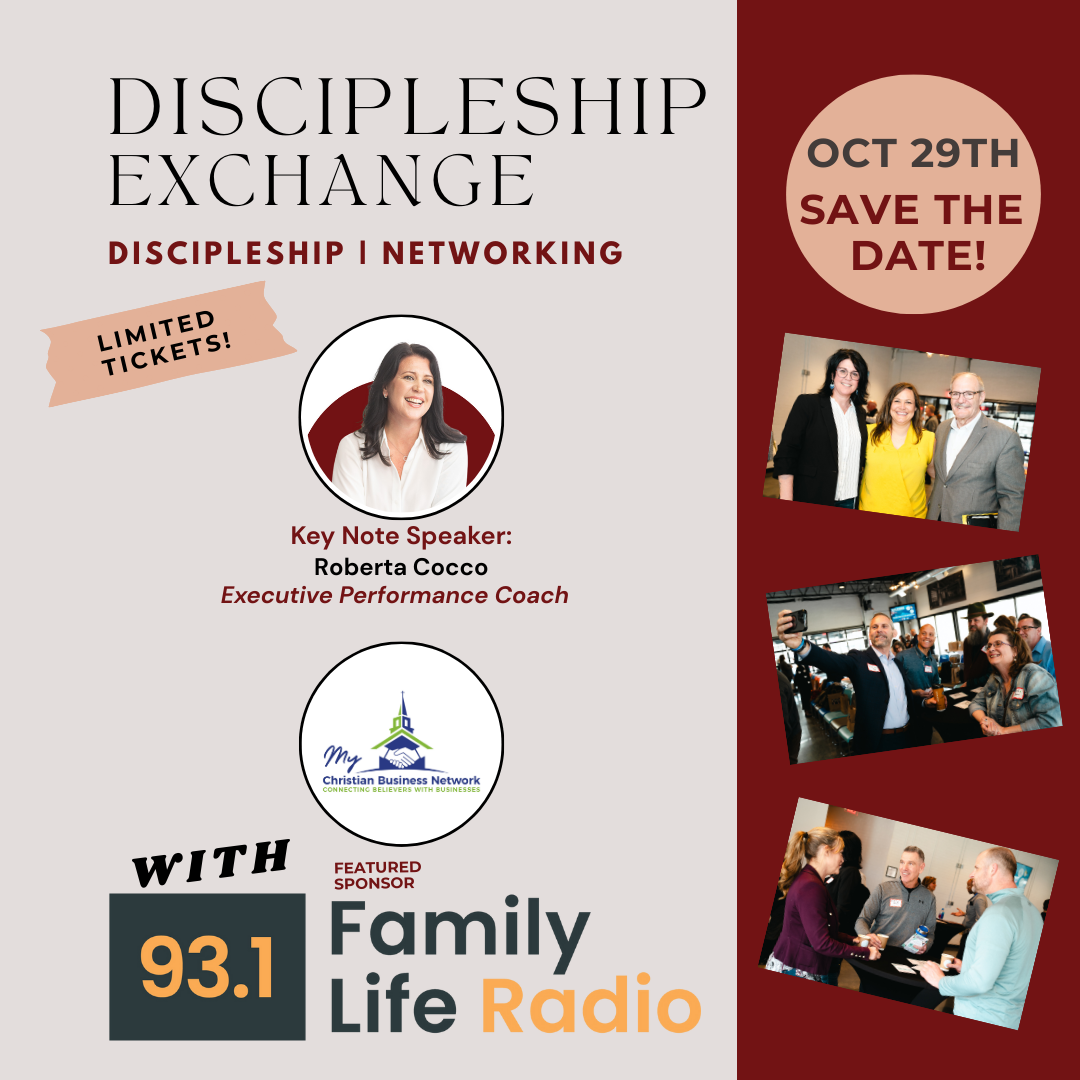 The Discipleship Exchange is a faith-driven networking event where Christian business professionals come together to build deeper, Kingdom-focused relationships. This gathering is designed to strengthen your walk with Christ while cultivating meaningful business connections that align with your values and purpose.