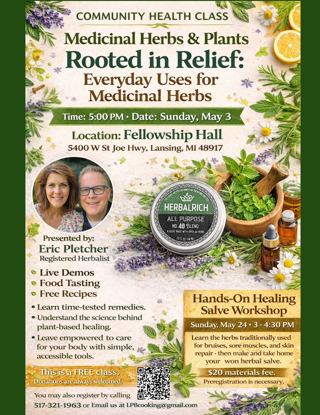 Learn how simple, time-tested herbs can support everyday wellness, understand the science behind plant-based healing, and gain practical tools you can use at home. Enjoy live demonstrations, food tastings, and free recipes to help you get started with confidence.