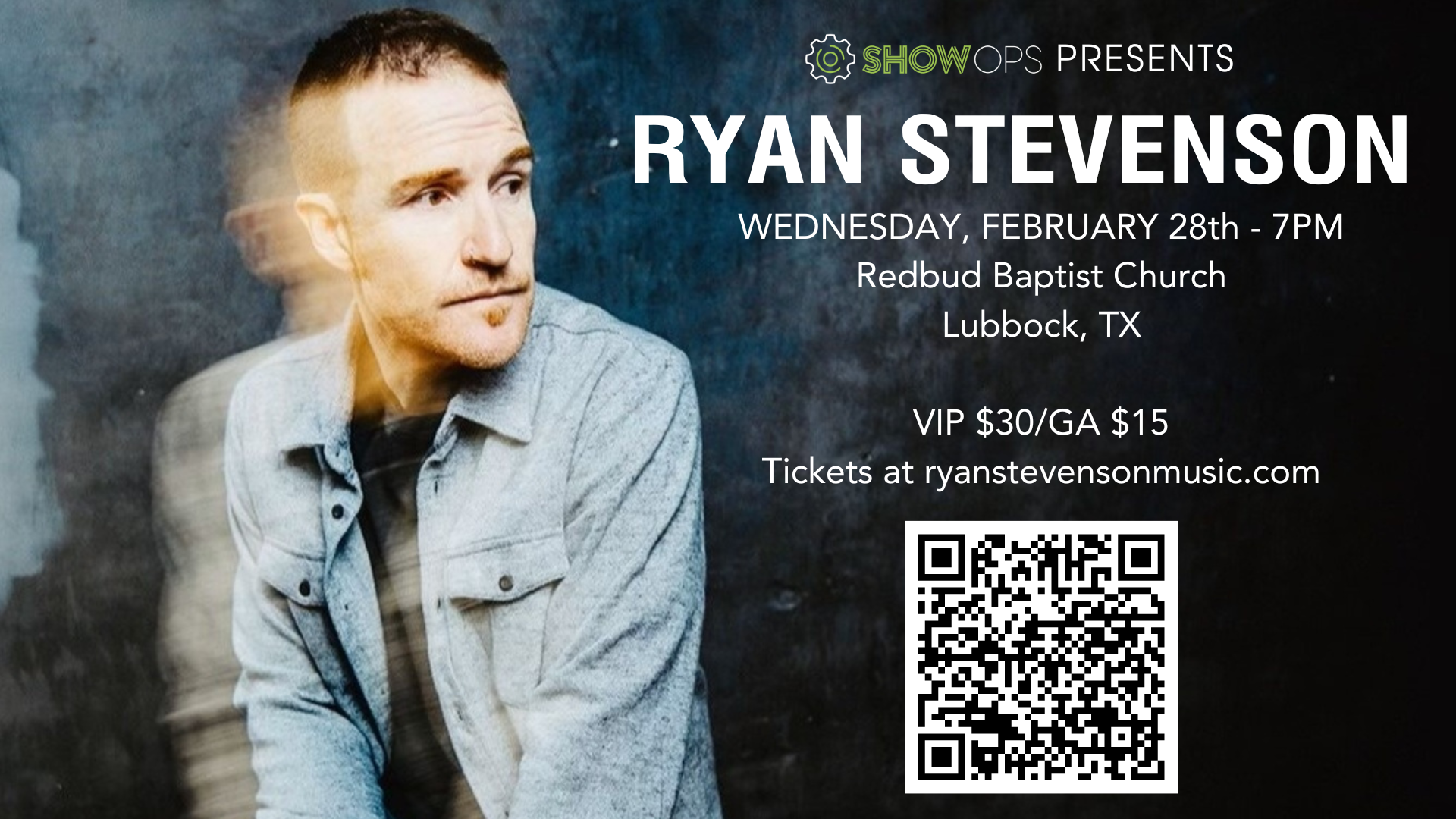 On February 28th, Ryan Stevenson (Eye of the Storm, Amadeo – Still My God, The Gospel) is coming to Lubbock and we’d love for you to join us! General Admission tickets are only $15. A limited number of VIP tickets that include early entry and a special meet & greet with Ryan are $30. Tim Timmons will open. Can’t wait to see you there!