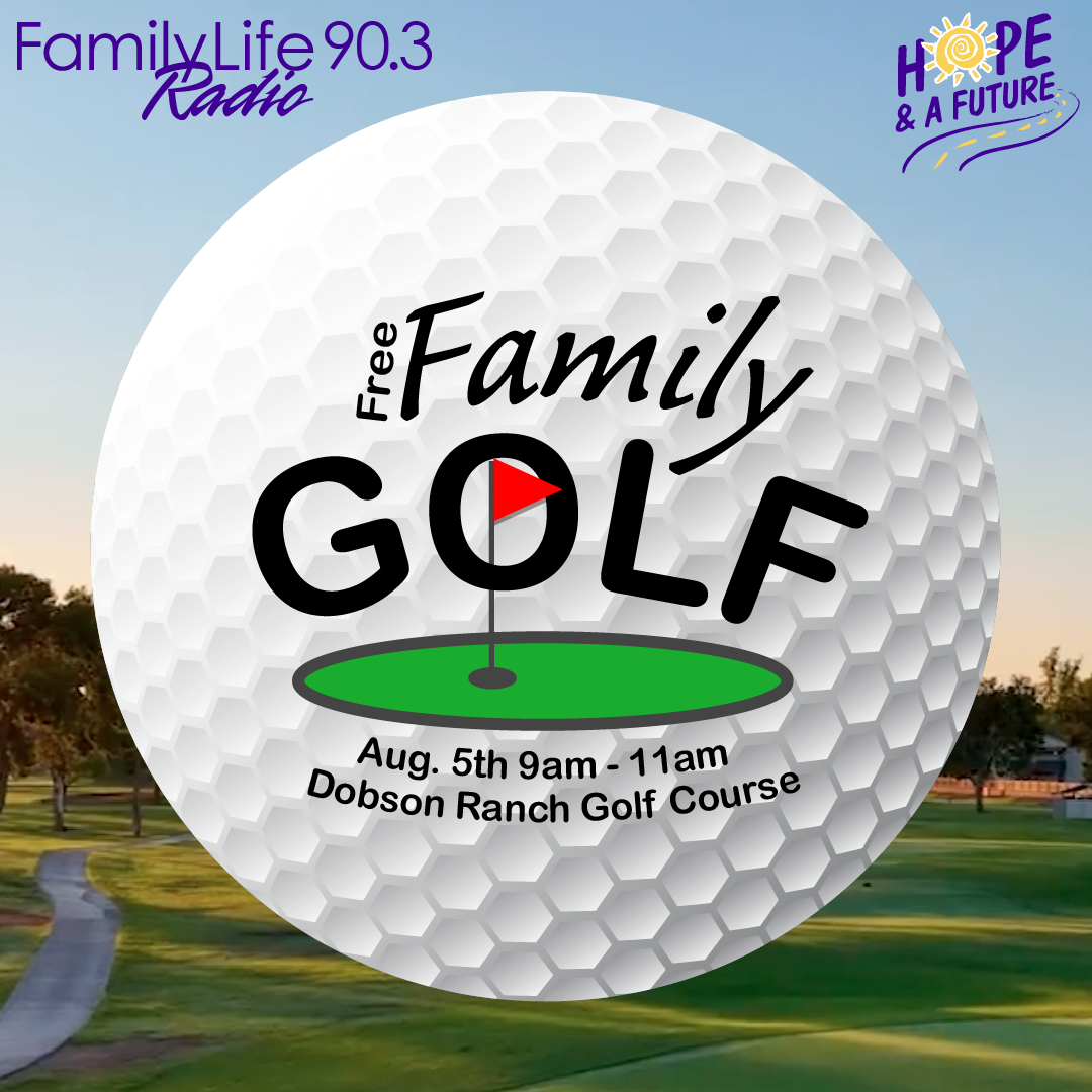 Family Life Radio is hosting a Free Family Golf Day at Dobson Ranch Golf Course Saturday, August 5th. Bring the whole family for a morning of games and prizes on the driving range. The event is free and golf clubs will be provided but space is limited. You can sign up by clicking the link below. Brought to you by Hope and a Future and Family Life Radio.