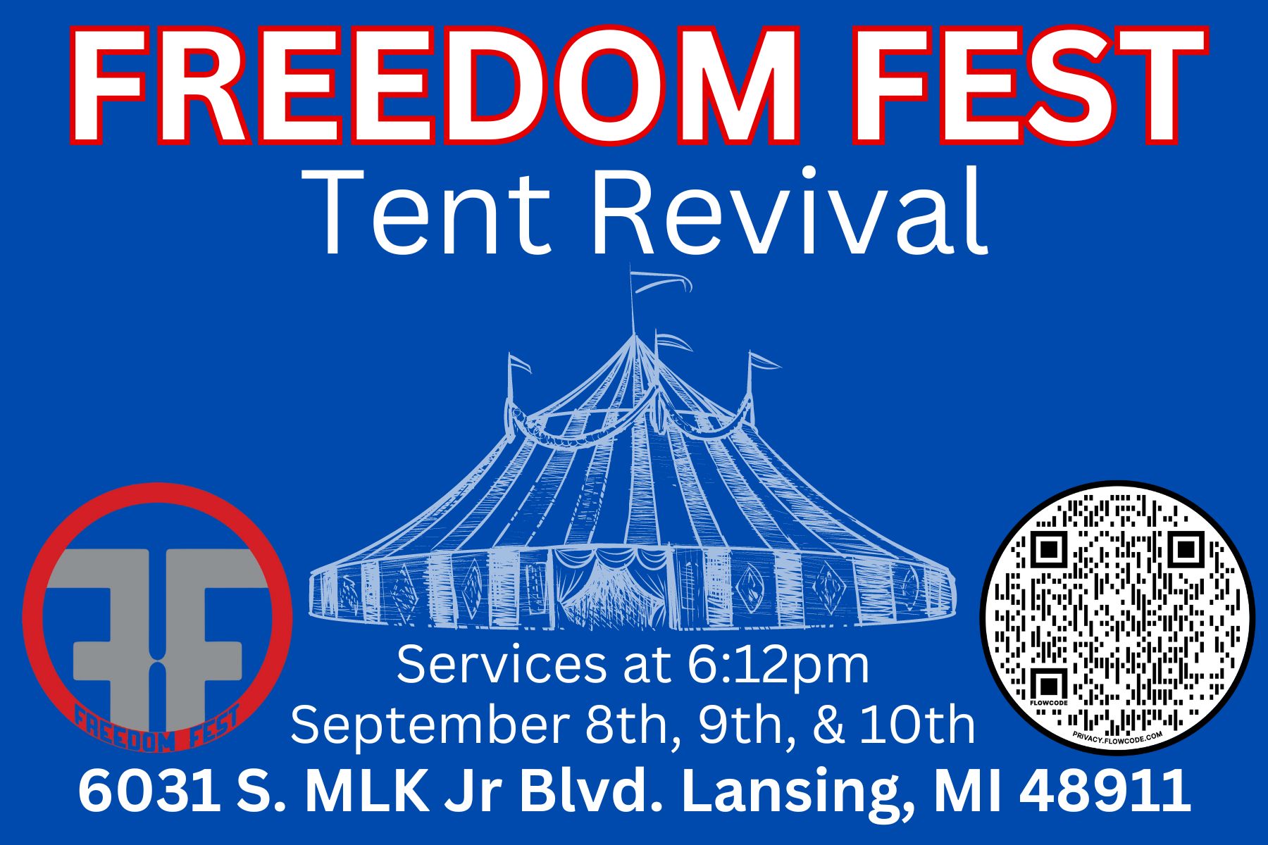 Freedom Fest is a 3-day revival under a tent; with music, dramas, puppets, vendors, and powerful sermons. The first one will be held in Lansing, Michigan, in an area that is ripe for Christ.