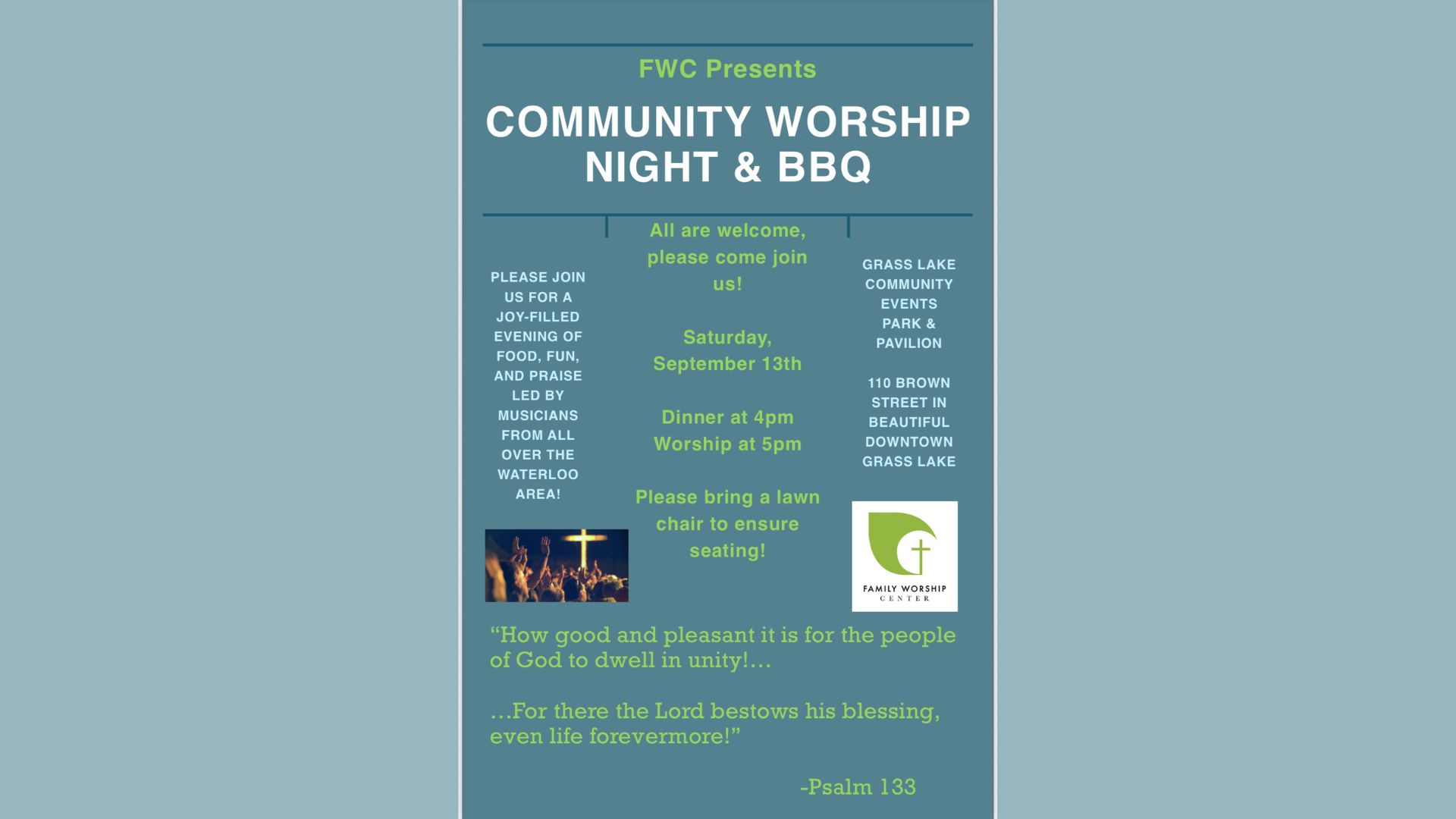FWC presents COMMUNITY WORSHIP NIGHT & BBQ