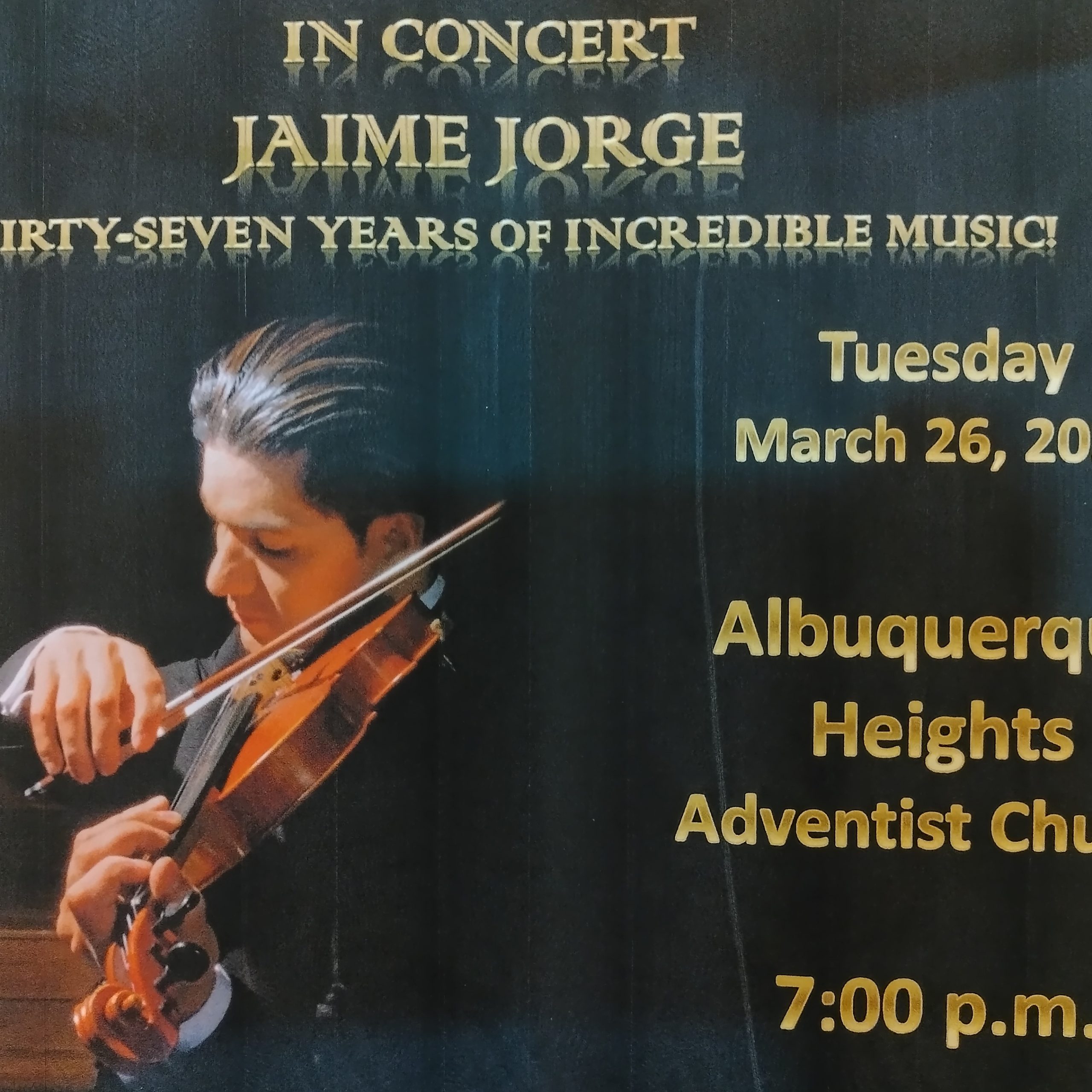 Jaime Jorge has played for presidents and kings. An amazing violinist with a story to tell. Come for the free concert (donations accepted) and we’ll have a Frito Pie dinner starting at 6:00 pm.