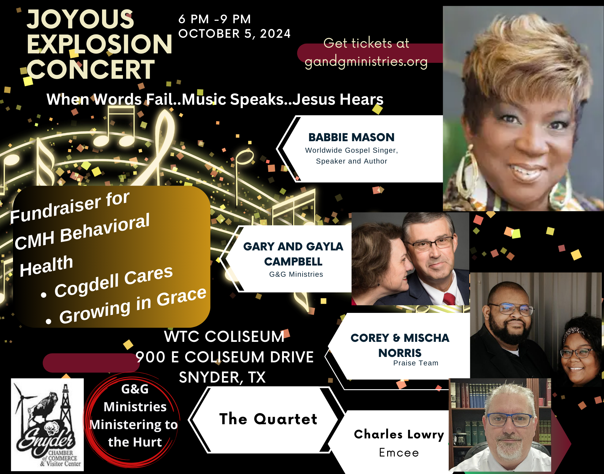 Headliner Babbie Mason will be in Snyder, TX to help with a fundraising event to benefit Cogdell Memorial Hospital’s Behavioral Health Department. The funds raised will go toward providing expert services in Snyder, TX and surrounding communities for mental health issues.