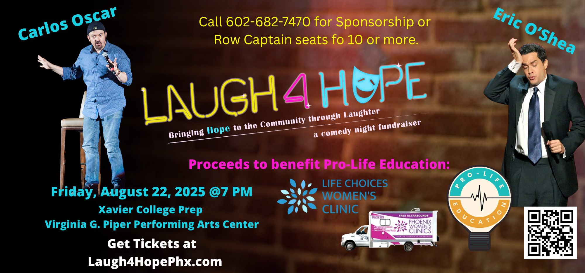 Laugh4Hope is a family-friendly comedy night fundraiser that both brings the community together and uplifts families while supporting Life Choices Women’s Clinic and Hope Mobile Clinic. Laugh4Hope’s Mission is to create an opportunity to bring hope to the community through laughter. Featuring Brian Kohatsu, Eric O’Shea and Carlos Oscar will provide the comedy that supports the pro-life work Life Choices Women’s Clinics.