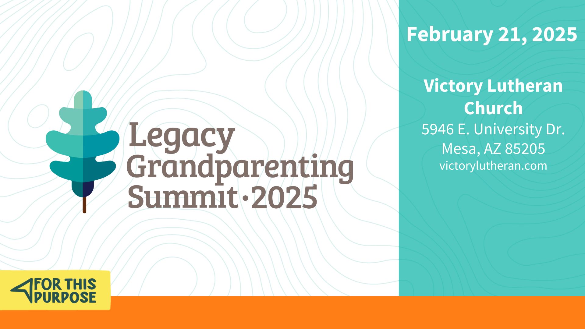 Victory Lutheran Church is a host site for The Legacy Coalition Grandparenting Summit on February 21, 2025. This year’s conference theme is For This Purpose. You’ll hear from top-notch Christian speakers like Dr. Jeff Myers, Trudy Cathy White, and Anne Graham Lotz. Each speaker addresses a specific purpose to help you fulfill your biblical role as a Christian grandparent. Lunch will be available on site.
