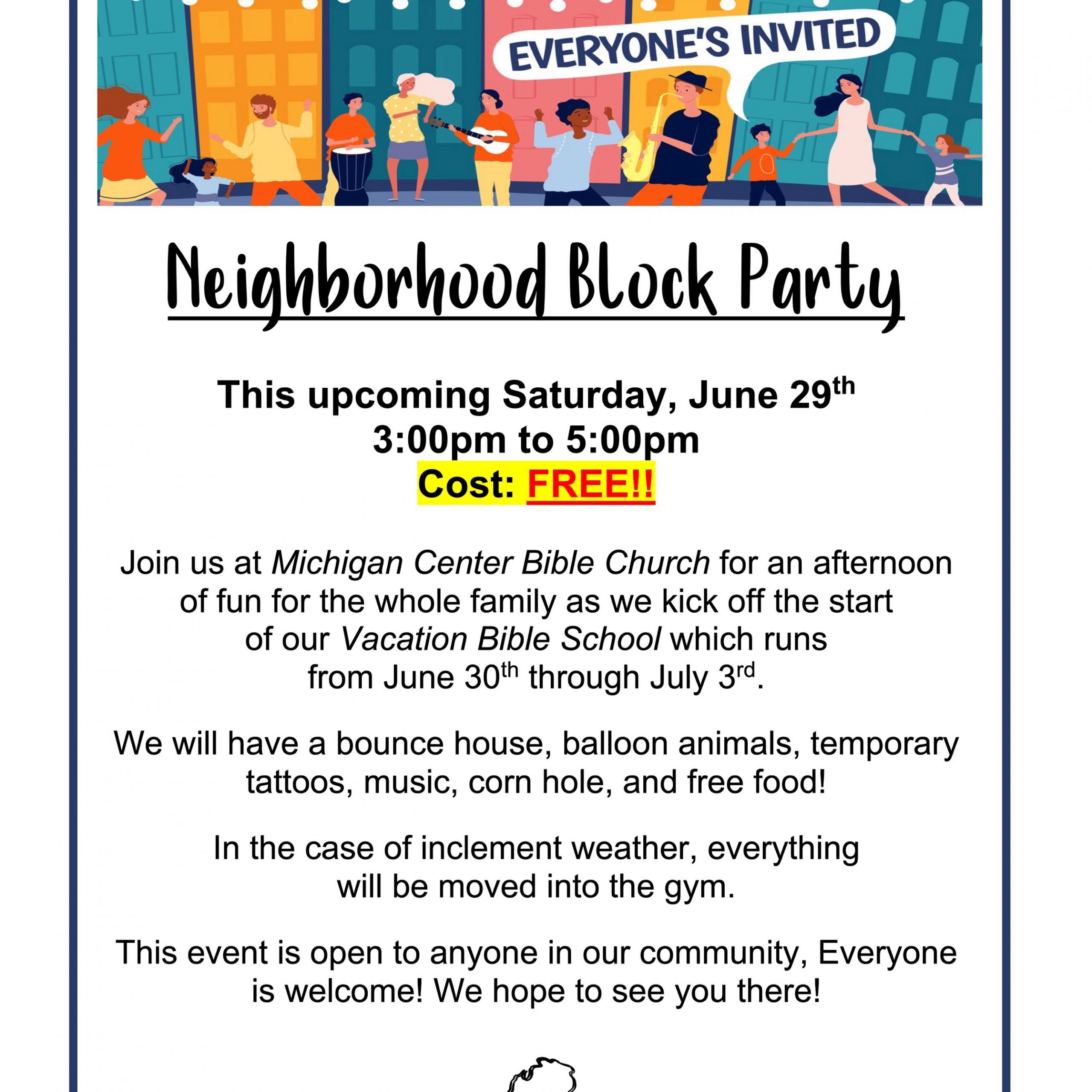 Join us at Michigan Center Bible Church for an afternoon of fun for the whole family as we kick off the start