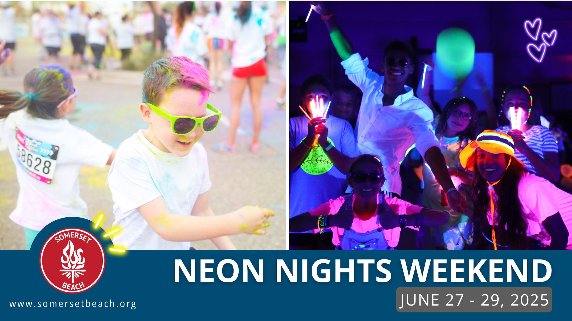 Get ready to light up the night at Somerset Beach Campground’s Neon Nights Weekend! This glow-filled weekend is packed with high-energy fun and unforgettable memories. Whether you’re camping with us or stopping by for the day, you won’t want to miss the bright lights and glowing excitement happening all weekend long.