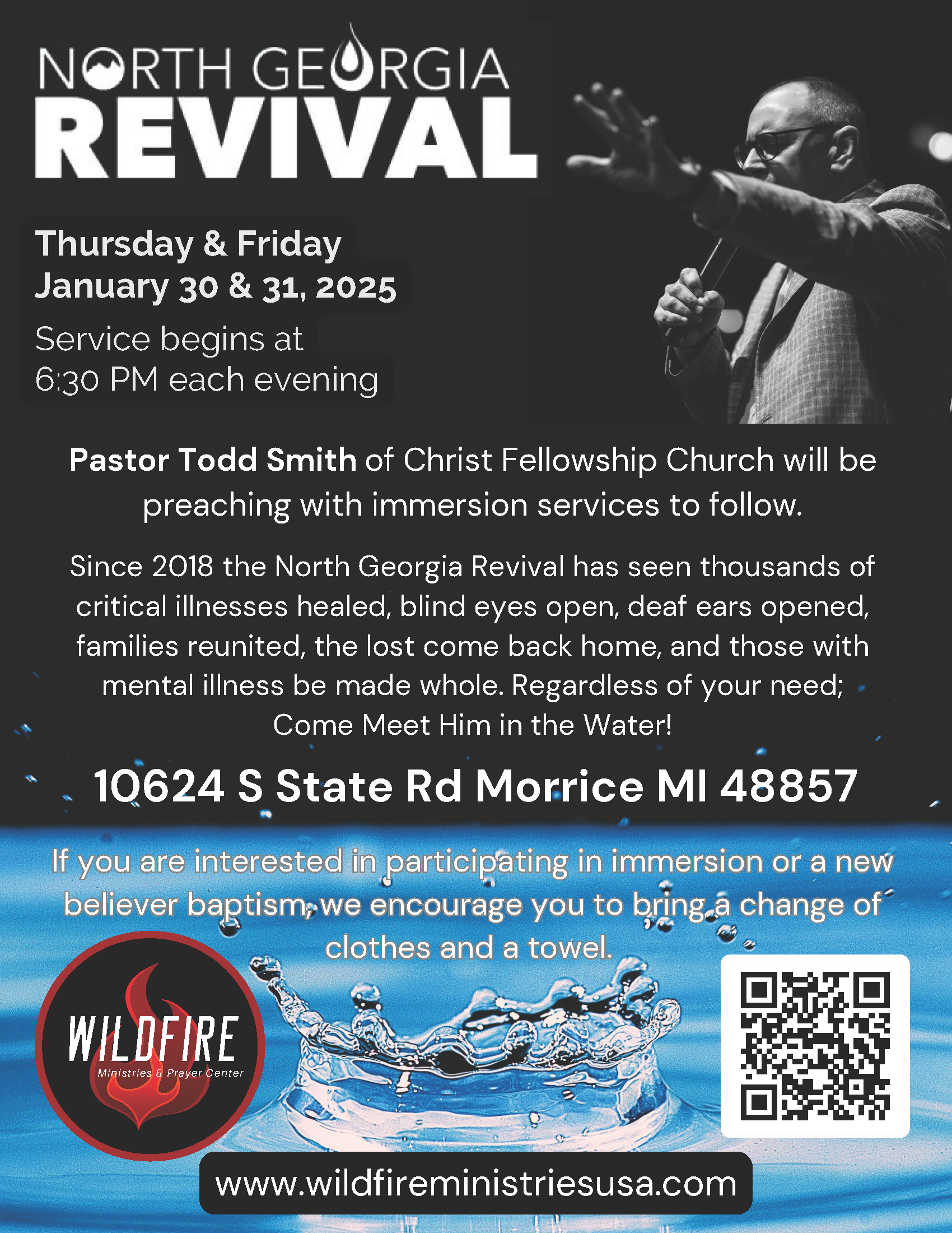 Pastor Todd Smith of Christ Fellowship Church will be preaching with immersion services to follow.