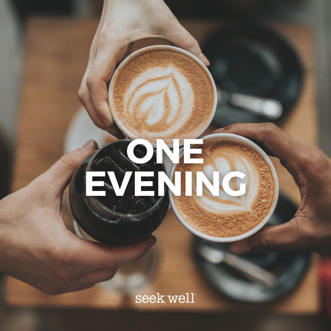 One Evening is your opportunity to press pause and take a deep breath. The team at Seek Well will help you learn how to slow down, settle your soul, and begin connecting deeply with God by learning to listen to His voice.