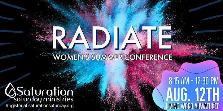 Saturation Saturday is hosting the Radiate Women’s Summer Conference, with 5 amazing speakers: Pastors Tammy Zubeck, Pastor Erica Moore, Pastor Alison Wallwork, Geriece Hightower, and PA Patterson.