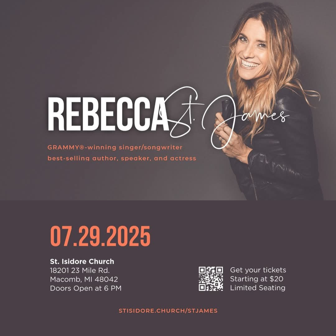 Join us for an unforgettable evening of music and faith as Rebecca St. James takes the stage at St. Isidore! A GRAMMY®-winning singer/songwriter, best-selling author, speaker, and actress, Rebecca has been inspiring audiences worldwide for decades. She’s also the sister of the award-winning band FOR KING & COUNTRY, sharing the same passion for worship and ministry.