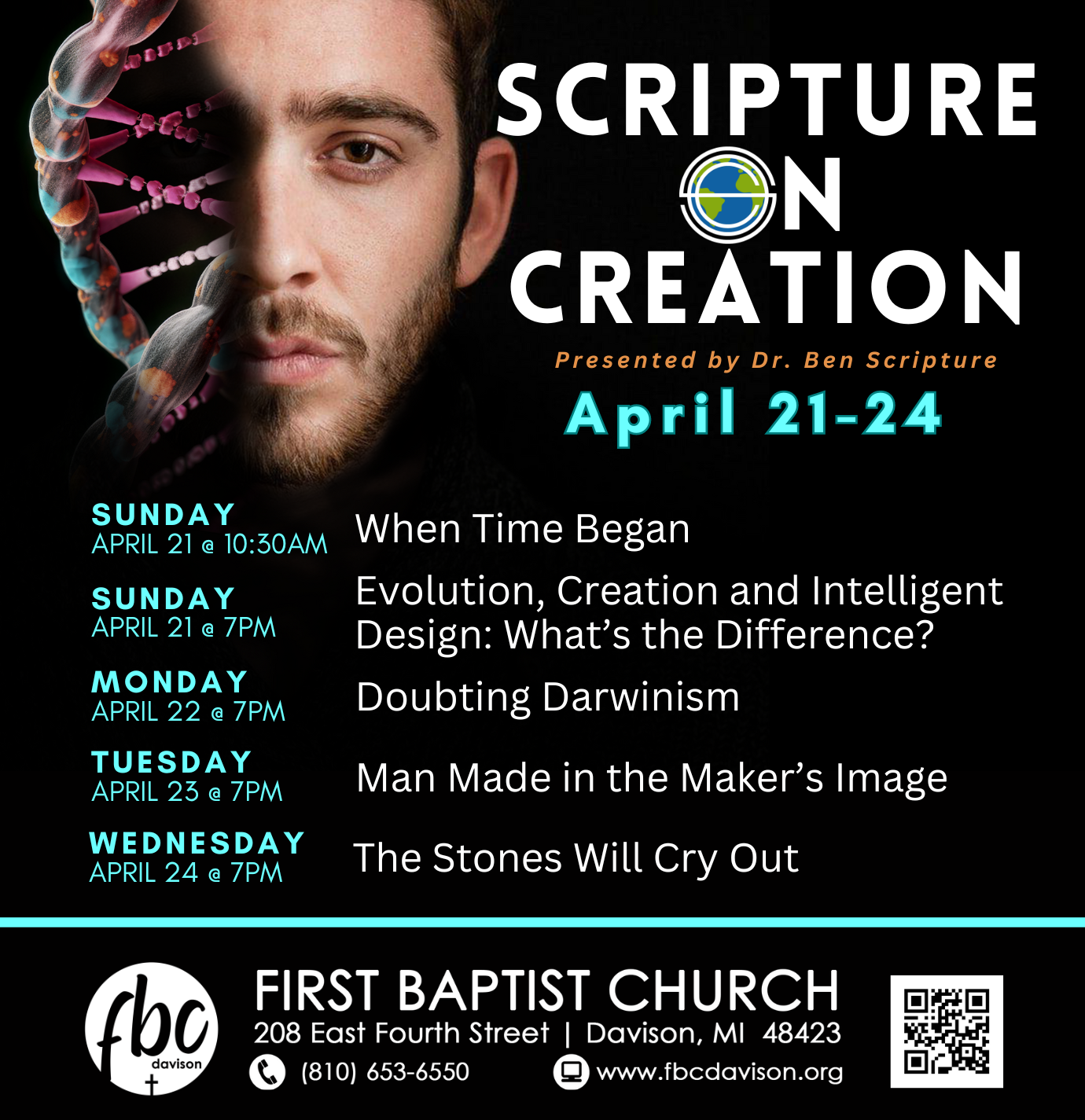 We’re excited to have Dr. Ben Scripture (www.scriptureoncreation.org) joining us again on April 21-24!