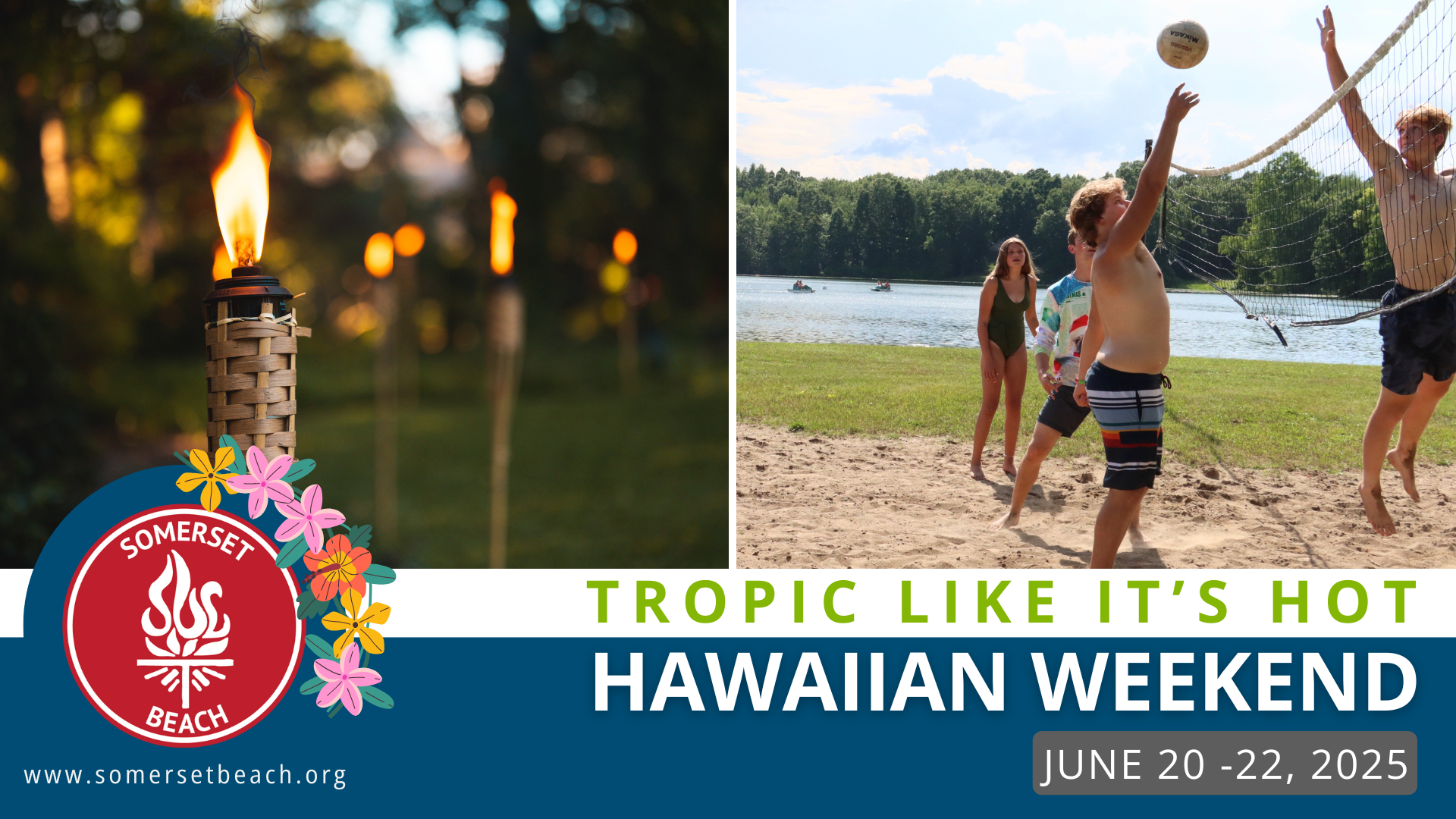 Get ready to trade your flip-flops for fun at our Tropic Like It’s Hot Hawaiian Weekend—a summer celebration packed with island vibes, games, and good food! From coconut scavenger hunts and hula hoop contests to sand volleyball and a tiki torch luau with island music, it’s the ultimate tropical escape—at Somerset Beach Campground. Don’t forget to grab a delicious pulled pork sandwich at the Cedar Center for just $10!