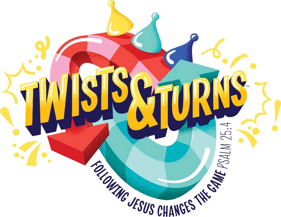 Twists & Turns™ Vacation Bible School is a fantastical celebration of games of all kinds! From classic tabletop games to strategy games to video games and more, kids will play their way through VBS while learning that Jesus guides them through all the Twist and Turns of their lives. They’ll find that even when they mess up it’s never “game over.”