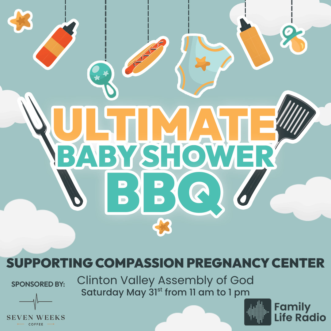 Join us for a baby shower inspired cook-out to support Compassion Pregnancy Center. It’ll be a time of games, giveaways with hot dogs and pulled pork at Clinton Valley Assembly of God on Southbound Gratiot Saturday May 31st from 11:00 to 1:00. We’ll be there playing music and collecting diapers and wipes for mothers in need.