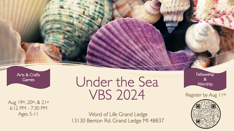 Join us August 19th-21st at 6:12pm for Word of Life Grand Ledge’s Vacation Bible School – Under the Sea. There will be Worship, Fellowship, Crafts, & Games.