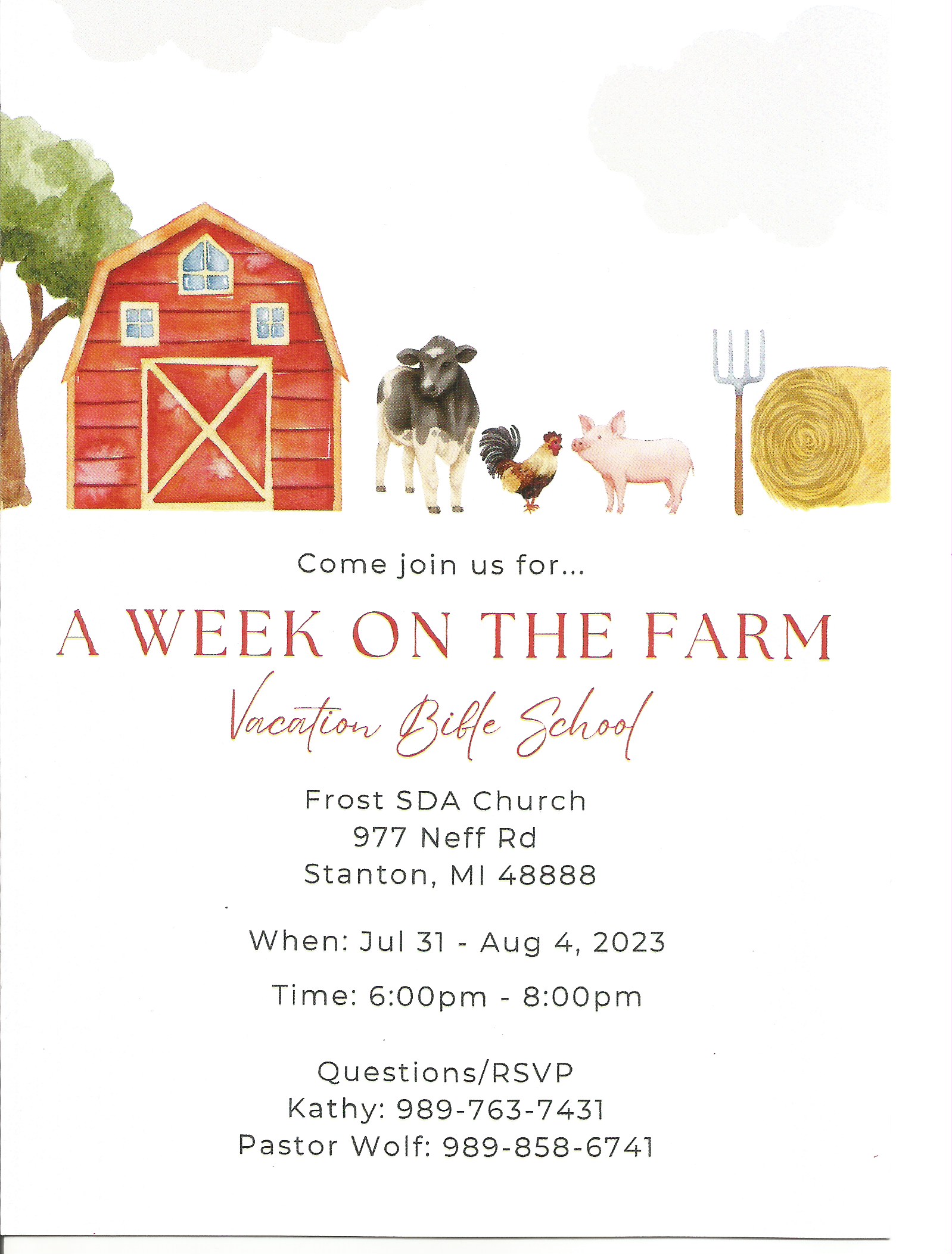 Vacation Bible School Theme: “A Week on the Farm”