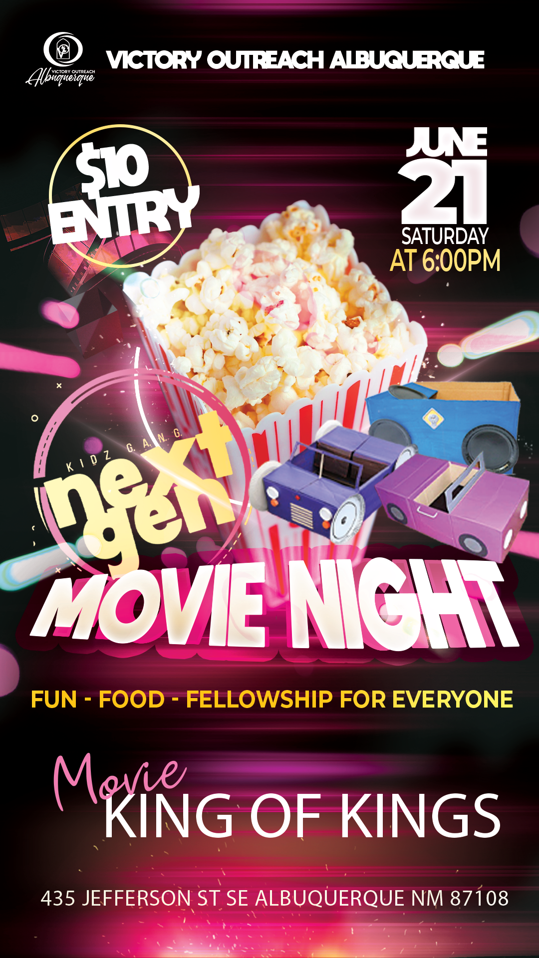 Come join us for the Movie night Hosted at Victory Outreach Albuquerque