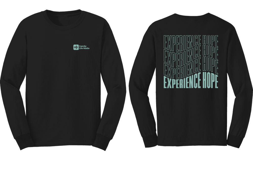 YOU make it possible for others to Experience Hope. Thank you! Your generosity as part of the Fall Fundraiser shares the life changing love of Jesus far and wide. Family Life Radio is family funded and that’s what you are–family. So thank you for being on this journey together as part of the team. The most popular gift is $30 a month a dollar a day (or all at once $360) and when you give a gift of this amount or more, we’ll send you a Family Life Radio limited edition T-shirt, so you can show the world the Hope you’re bringing!